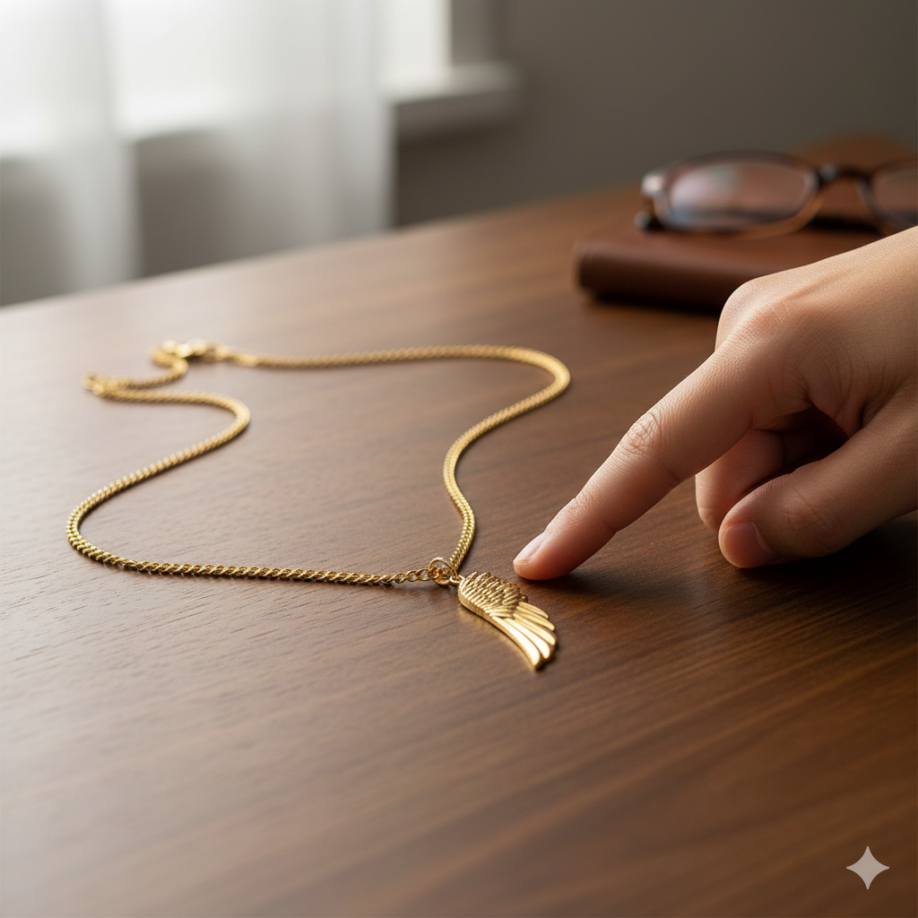 Esta corrente representa o cuidado de Deus te envolvendo e guiando cada passo, como se um anjo estivesse sempre ao seu lado.